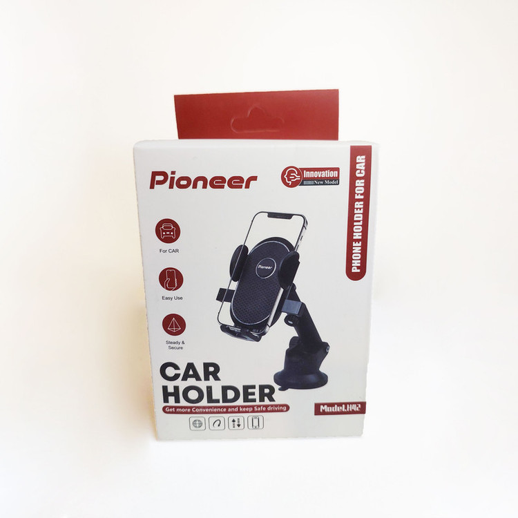 پایه نگهدارنده گوشی موبایل (هولدر) پایونیر PIONEER مدل H42 یک نوع هولدر موبایل است که داخل خودرو استفاده می شود. این نوع هولدر را می توانید در قسمت های مختلف خودرو برای نگهداری گوشی موبایل خود استفاده کنید. بر روی داشبورد برای کاربرد های مرتبط و حتی شیشه جلوی ماشین کنار آینه مورد دیگر استفاده از این نگهدارنده است که قابلیت های مختلفی را برای شما فراهم می کند. پایه این هولدر به صورت محکم بر روی مکان مورد نظر شما می چسبد و در مواقعی که خودروی شما حرکت های شدید داشته باشد ناشی از گذراندن دست انداز های کوچک و بزرگ یا موارد مشابه گوشی شما را ثابت بر روی هولدر نگه می دارد.